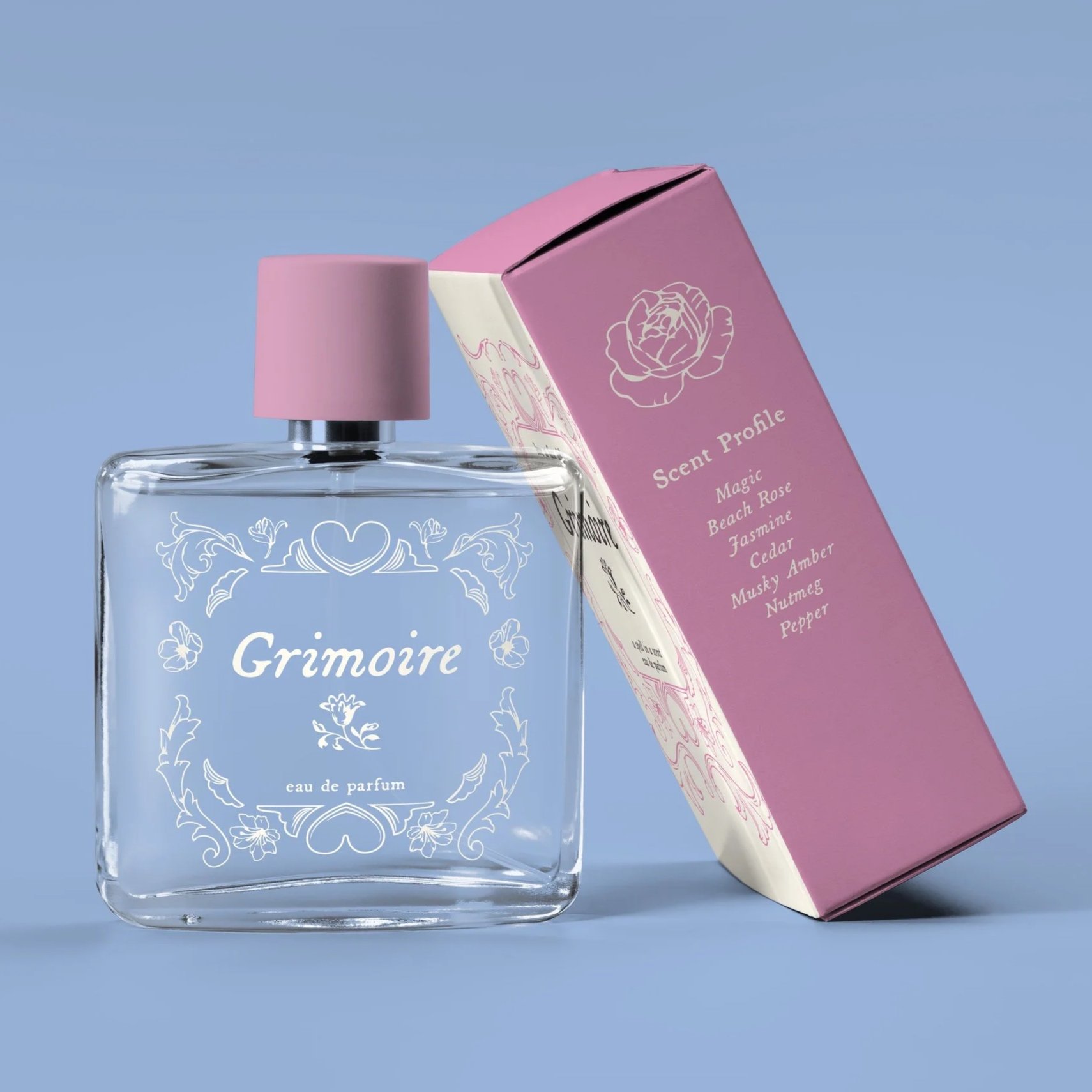 Through its branding, Grimoire balances the ethereal and the modern, incorporating spell book-inspired typography, floral symbols, and a color palette that reflects the emotions and energies of each scent. The design aesthetic blends mystery with sophistication, ensuring that each bottle feels like a magical artifact waiting to be unlocked.